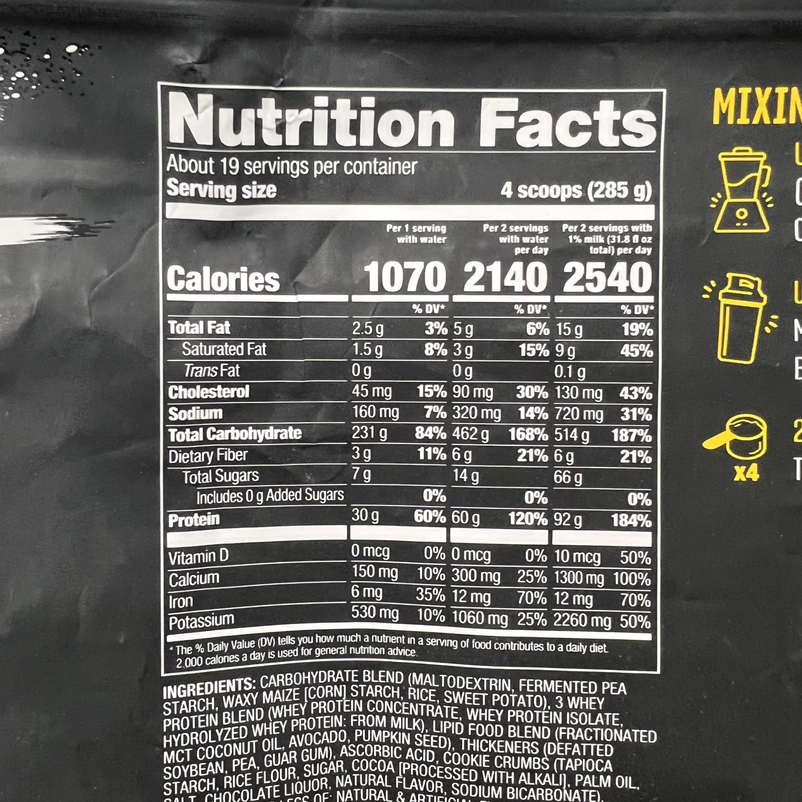 هر وعده Mutant Mass Extreme 2500 مقدار بسیار زیادی کالری همراه با ترکیبی از مواد مغذی مانند نشاسته، قند، پروتئین، ویتامین ها، مواد معدنی، چربی و … را فراهم می کند. ترکیب همه اینها در یک لیوان شیر مغذی برای افزایش وزن به شما کمک می کند بدون نیاز به خوردن زیاد کالری اضافه کنید.