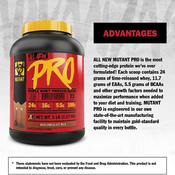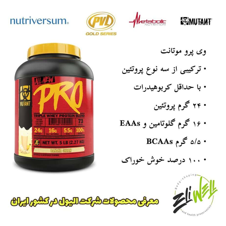 پودر پروتئین وی پرو موتانت Mutant Pro از 3 منبع پروتئین وی تشکیل شده است و مراحل سریع ریکاوری و جذب آمینو اسید با زمان جذب طولانی را فراهم می آورد. پروتئین جذب شده در طول زمان به شما کمک می کند تا بتوانید از شدیدترین تمرینات خود نهایت استفاده را ببرید. این محصول در 4 طعم خارق العاده و با کیفیت استاندارد گلد طراحی شده است. این استاندارد تضمین می کند که بهترین مواد تشکیل دهنده در هنگام ساخت استفاده شده است.