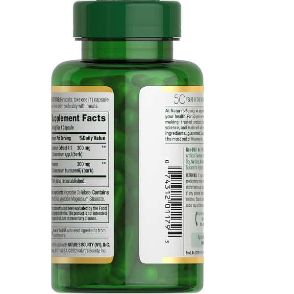 پشتیبانی طبیعی از متابولیسم و سلامت بدن با کپسول دارچین نیچرز بونتی